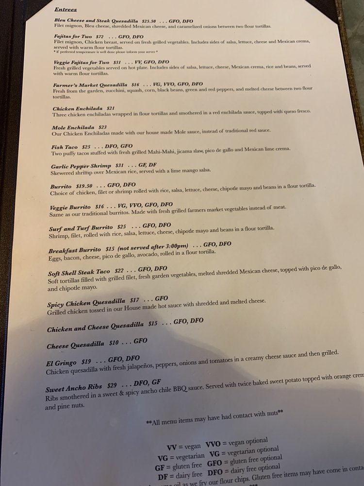Filet mignon, grilled chicken breasts, served on fresh grilled vegetables. Includes sides of salsa, lettuce, cheese and Mexican crema, served with warm flour tortillas.